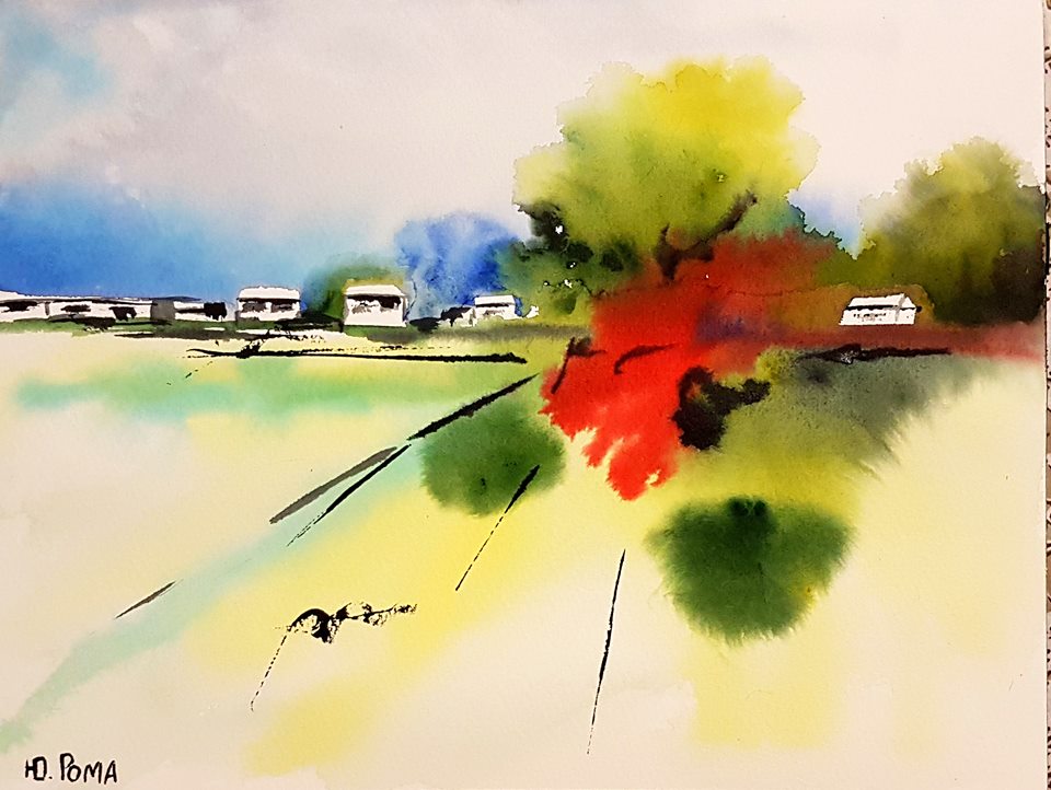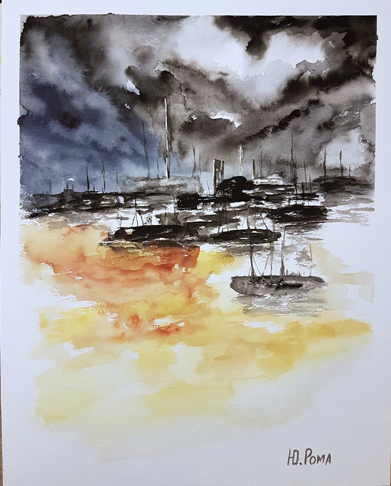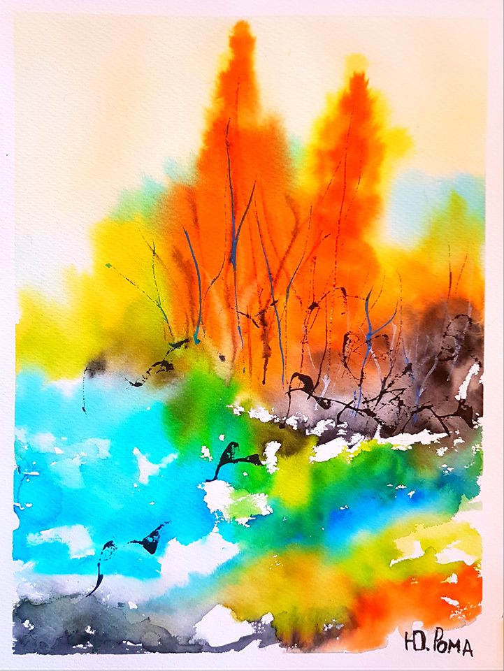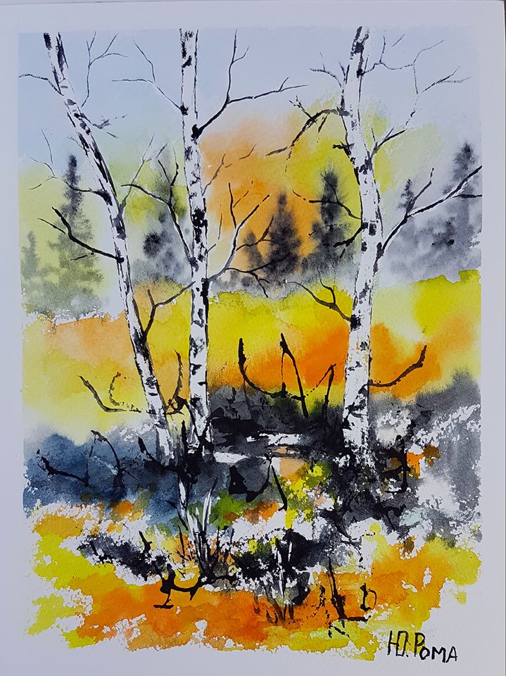 Акварель, линер, 35*55